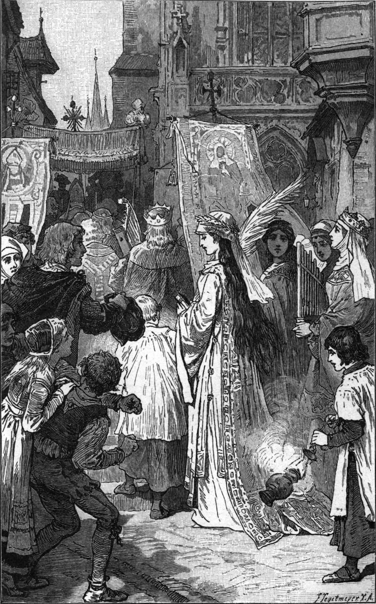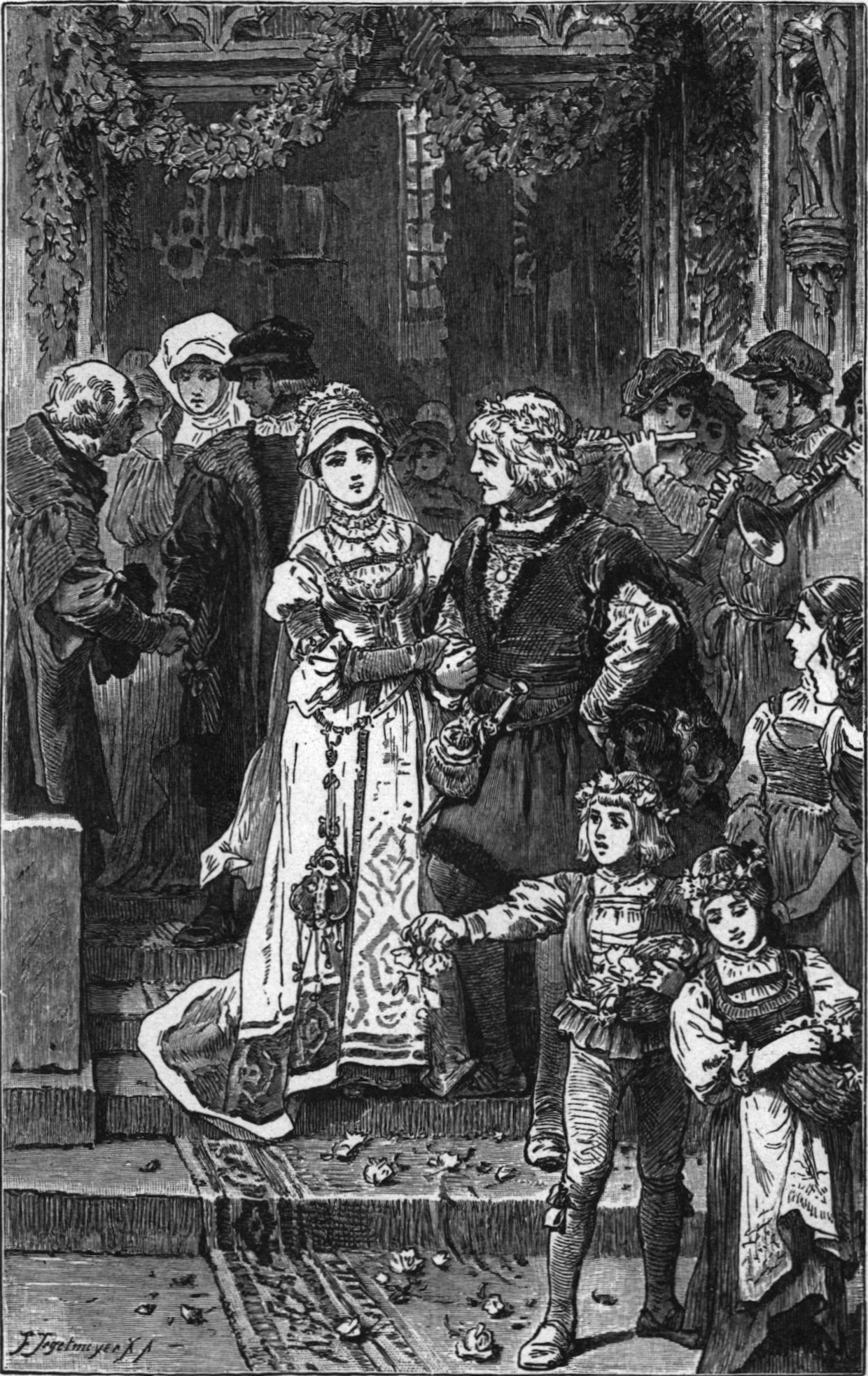 Über des Ritters wettergebräuntes Gesicht flog ein wehmütiger Schatten. „Habt Dank für Eure gütige Nachfrage, ehrsame Frau,“ erwiderte er; „mein Weib ist gesund, aber mit unsern Töchtern haben wir kein Glück. Zwei hat der Himmel wieder zu sich genommen, und Sankt Kilian mag wissen, ob ich die jüngste noch am Leben finde, wenn ich heimkehre.“