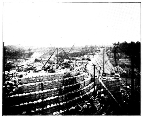 The commission has estimated ten years for the completion of the canal on the Panama route and eight years for the Nicaragua route, including [Pg 468] in both cases the time required for preparation and that consumed by unforeseen delays. The writer believes that the actual circumstances attending work on the two routes would justify an exchange of these time relations. There is great concentration of work in the Culebra-Emperador cut on the Panama route, covering about 45 per cent of the total excavation of all grades (43,000,000 cubic yards), which is distributed over a distance of about 7 miles, with the location of greatest intensity at Culebra. This demands efficient organization and special plant so administered as to reduce the working force to an absolute minimum by the employment of machinery to the greatest possible extent. A judicious, effective organization and plant would transform the execution of this work into what may be called a manufactory of excavation with all the intensity of direction and efficiency of well designed and administered machinery which characterizes the concentration of labor and mechanical appliances in great manufacturing establishments. Such a successful installation would involve scarcely more advance in contract operations than was exhibited, in its day, in the execution of the work on the Chicago Drainage-canal. By such means only can the peculiar difficulties attendant upon the execution of great works in the tropics be reduced to controllable dimensions. The same general observations may be applied to the construction of the Bohio dam, even should a no more favorable site be found.