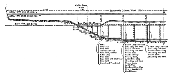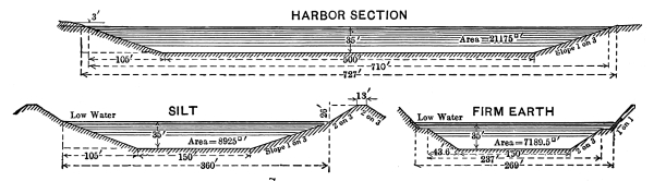 “It is possible also that a fissure might open which would drain the canal, and, if it remained open, might destroy it. This possibility should not be erected by the fancy into a threatening danger. If a timorous imagination is to be the guide, no great work can be [Pg 464] undertaken anywhere. This risk may be classed with that of a great conflagration in a city like that of Chicago in 1871, or Boston in 1872.