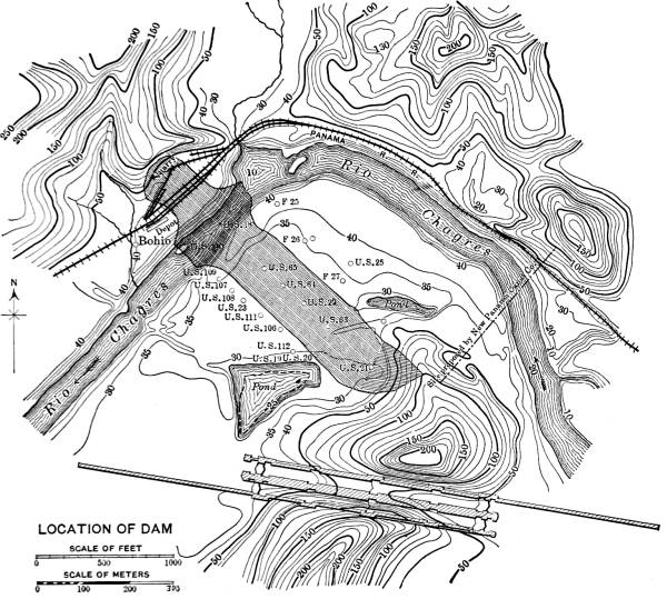 The item in this table called Panama Railroad diversion affords [Pg 459] provision for the reconstruction of the railroad necessitated by the formation of Lake Bohio. That lake would submerge the present location of the railroad for 14 or 15 miles.