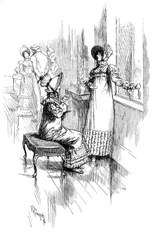 The not sarcastic or not purely sarcastic scenes and personages of the novel have considerable merit, which would be more easily perceptible if they were not kept apart from each other by so much of the Fax-and-Forester business. Anthelia has excited interest and admiration as a reminiscence of Peacock’s first love, and a first draft of the more perfectly conceived Susannah Touchandgo in Crotchet Castle. They both exhibit—with some modern touches, chiefly in the latter of the pair—the sentimental but intelligent heroine of the last century. Mrs. Pinmoney and her daughter are slight, but good, and the former’s list of tastes is a capital passage, while Sir Telegraph Paxarett is an excellent personage, showing something of Thackeray’s partiality for making a young man of fashion not quite a coxcomb, such as the older novelists had been prone to draw him. Mr. Derrydown, who is a sort of first sketch of Mr. Chainmail in Crotchet Castle, is a very intelligent mediaevalist; and the ‘supers,’ Mr. O’Scarum and the rest, play their parts very well.