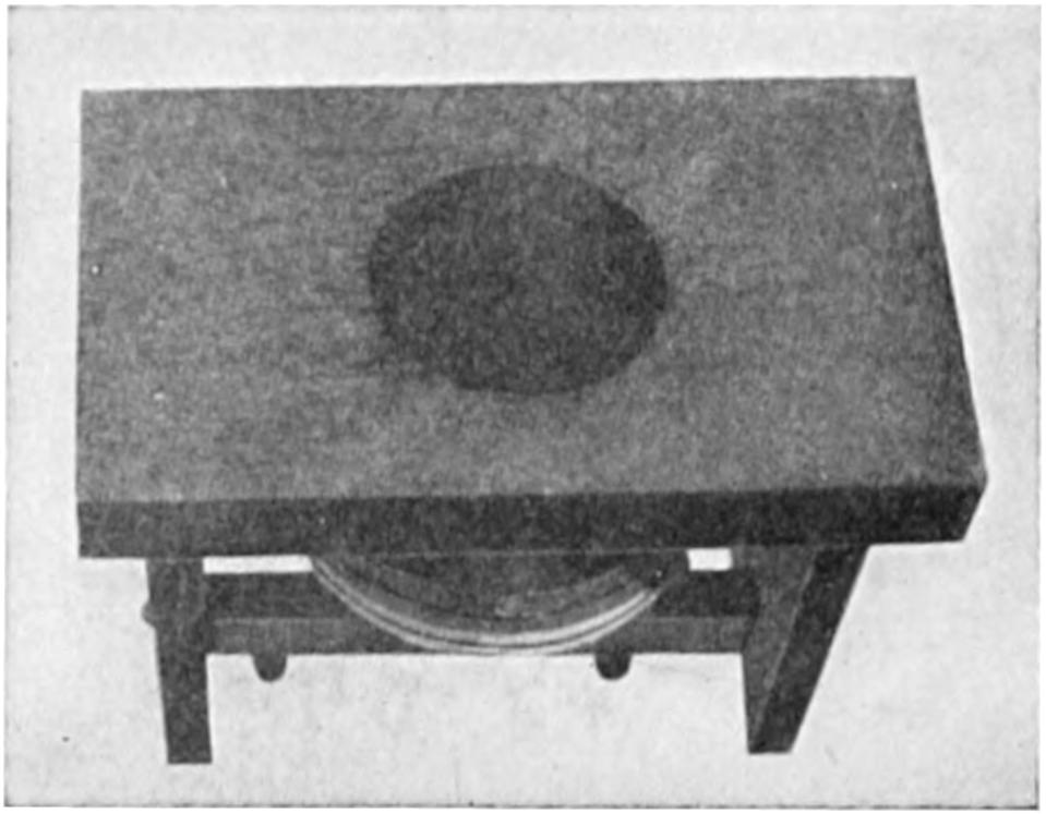Having made the negative the next step is to make a printing plate from it. To do this, a piece of metal, copper if the work is fine, and zinc for coarser work, is coated with a solution which is sensative to light, fish glue is commonly used to which is added a small amount of ammonium bichromate. The metal being coated and dried, it is put in a very strong frame with the negative and squeezed together so that they are in perfect contact. A powerful light is now directed upon the negative with the metal behind it, the result being that wherever the light goes through the white spaces in the negative, the coating on the metal is rendered insoluble. Where the dots on the negative are, the light is unable to get at the coating so that when the metal is removed from the frame and thoroughly washed this part of the coating washes away, leaving the part which the light got at attached to the metal. This is now heated until the enamel, as the coating is called, turns dark brown and the picture can be easily seen.