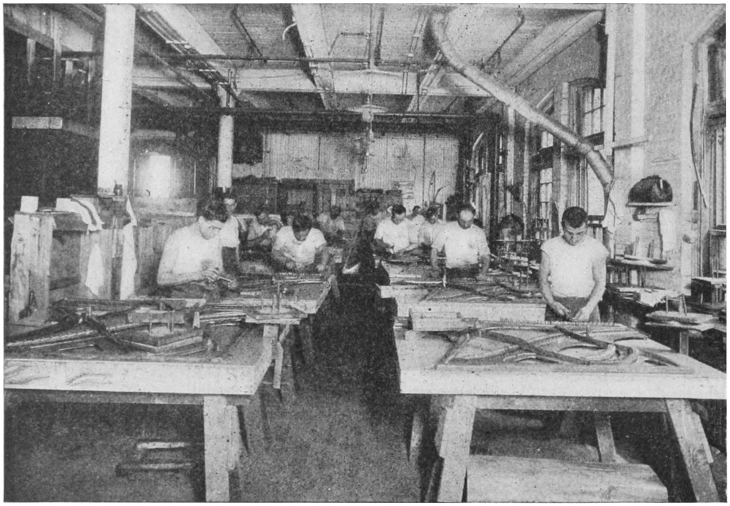 In this picture we see the “case makers” at work making the covers on which the actual book is bound.