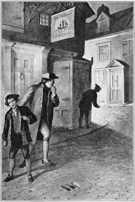 To the end that we might see what was going on and at the same time remain at a respectful distance from the red-coated gentry, I proposed to Jeremy that we meet in front of that shop at the corner of Front street and Black Horse alley which was formerly Mrs. Roberts’ coffee-house, and there we would not only be at a safe distance from the Britishers who were likely to be in a disagreeable mood from overly much drinking; but, in addition could, if need arose, readily make our escape.