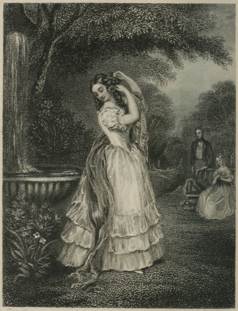 Nor did the charms with which she was really endowed lose any thing from want of skill in the possessor. She had the art of keeping an indefinite number of persons occupied with her alone; she had left her shawl in the next room, and, with a thousand graceful apologies, she asked one person to fetch it for her, at the same time holding her cup in a helpless manner, and casting a beseeching glance around her, which brought a hundred eager hands to set it down. Then she looked timidly confused at having given so much trouble. Presently she had a message to send to her cousin Fanny, with which she despatched one admirer, while she hinted in [Pg 5]a low voice to another, who was pressing her to stand up in the next quadrille, that she did not like to do so while Fanny was sitting still. The devoted youth flew to dance with Fanny, claiming as his reward the hand of Isabella for the ensuing waltz. She knew how to pique and to excite the vanity of each: to one she implied she had heard something of him which certainly had very much surprised her; to another that she understood he had been abusing her horridly; she playfully scolded a third for not admiring Fanny half as much as he ought, and wondered how he could be so blind. She assured a fourth that he and all the world had quite mistaken her disposition; indeed, that scarcely any one did understand her; implying there was depth of character and feeling beyond the reach of the multitude, and thereby piquing and interesting the sentimental youth to discover these hidden treasures.
