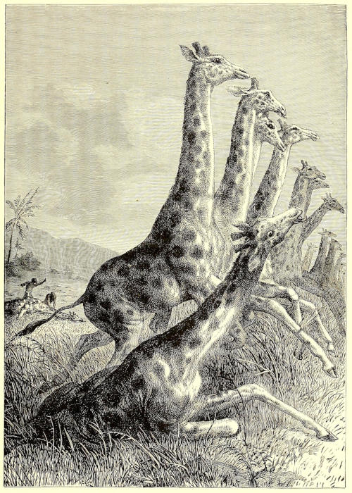 The town of the prairie-dogs is in a beautiful situation. It lies in the broadest part of the park, surrounded by the highest and grandest of the mountains. A few days ago, as I was riding through it in the early morning, I saw an animal some distance ahead running hard toward the woods. Thinking it was a wolf or coyote, I paid little attention at first, but looking closer, I saw plainly that I was mistaken, for its legs were short, and its body long and heavy. It went springing over the grass with long bounds, and its coat of fur was grayish, shading to yellow brown; and I knew it must be one of the great panthers which are generally called mountain lions. I had never before met one, though their great, round footprints, as large as tea-plates, had often been seen in the soft snow the last winter. Like other cats, they like to sleep in the day and to prowl at night. Gip took a long, wistful look at the lion; but he is a small dog, and a very wise one, and he knew his life would be short if he should approach very near to that great creature, so he went back to his hard work with the prairie-dogs, and left me to go galloping off alone for a nearer view of the[731] lion. But Monkey dislikes wild beasts quite as much as Gip, and would never willingly have carried me very near to a beast of prey, even if the lion had not run up into the rocks on the mountain-side before I had seen it very clearly.