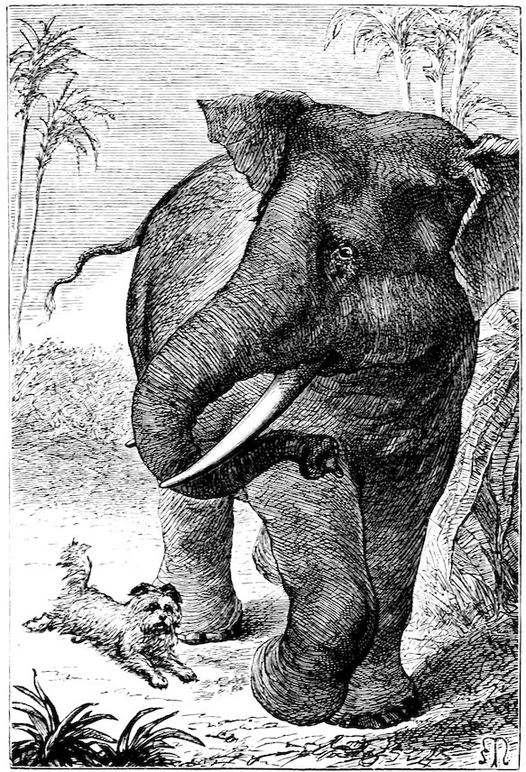 145Upon one occasion all our elephants were seized with a sudden panic, and very nearly annihilated the camp. We had halted for two or three days at a large station where an energetic engineer officer had prepared, as a great treat for the Commander-in-Chief, various noisy military shows winding up with the springing of a mine. When the important evening arrived, the whole camp went to see the sight except me, for I must tell you as a secret that I hate reviews; the noise and dust and smell of gunpowder is so disagreeable to me that I never go to one if it is possible to avoid it: upon this occasion I was, as usual, the only person left in camp except a few servants to prepare dinner; every one had departed two or three hours before to assist at the grand affair, and many had chosen to ride to the place of inspection on an elephant, thinking they could then dismount and select a good place to see the show on foot. When the sun had 146set, I came out of my tent and walked up and down the broad street formed by the principal tents; for a wonder, instead of sand, I had nice turf under my feet, and I strolled up and down for a long time, rather enjoying the profound quiet, which was a contrast to the usual bustle and chatter of the camp. I was just beginning to feel hungry and to wonder when the ‘tomasha,’ or festival, would be over, when I heard a loud explosion, and saw clouds of stones and dust fly up into the air some way off. This was the springing of the mine, and I congratulated myself on being so far away in peace and safety; but I soon changed my mind about the safety, for in a few minutes there was a regular stampede of terrified elephants returning to camp. Some had thrown off their riders and were galloping about, trumpeting and bellowing with terror; and even those whose mahouts still clung to them had quite broken away from all control, and did just as they liked. I stood still, watching the huge beasts entangle themselves in the long ropes stretching 147out from the tents, and pulling down one after another of our canvas homes. In more than one case the pole of a ‘single tent’ snapped, causing great ruin beneath, and I saw the cooks with their assistants swarming out like bees from a disturbed hive, whilst the elephants ruthlessly trampled their preparations under foot, and beat down their little mud ovens.