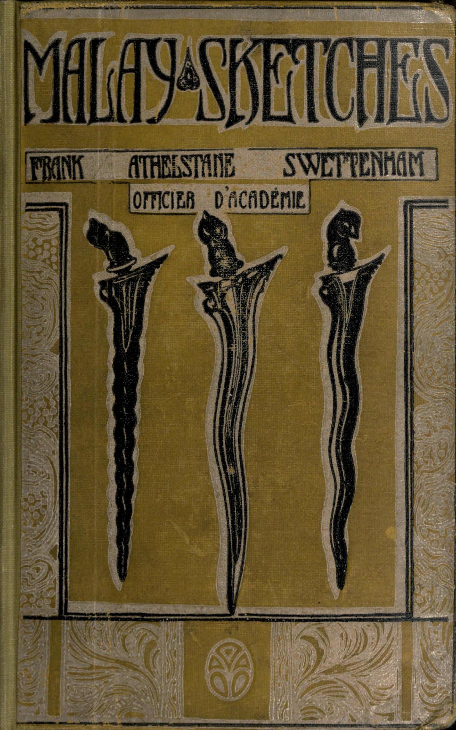 The three daggers on the cover are good types of the Malay “kris,” the favourite national weapon. The originals of these particular specimens are in the Perak museum and were photographed for this design.