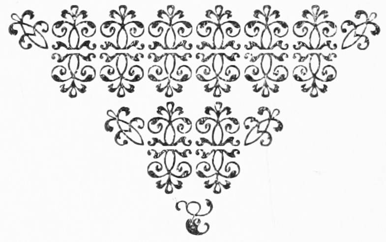 With the present wide-spread belief in Puritan austerity of character, there is associated a conception of a simplicity of dress and manners. But the channels of information by which present day beliefs have been shaped usually have been ecclesiastical, and bias and convenient forgetfulness have been factors in outlining the composition of the picture. Human nature and human frailities were much the same in the seventeenth century as at the present time. In point of fact, our New England ancestors when viewed as a body, are found to have had standards of living far below those of today. The common speech was gross in the extreme. Crowded living led to familiarity. There was more drunkenness, profanity, loose living and[Pg 23] petty crime in proportion to the population than at the present time, and by no means did every one go to meeting on Sunday. The ministers controlled the lawmaking body and sumptuary laws were enacted which are enlightening. Because of “newe and immodest fashions” the wearing of silver, gold and silk laces, girdles and hat bands was prohibited. It was the fashion at that time to slash the sleeves so that a fabric of another color worn beneath would show in an ornamental manner through the slash. The ministers decreed that neither man nor woman should wear clothing with more than one slash on each sleeve and another on the back. “Cuttworks, inbroidered or needle worke capps, bands & rayles,” were forbidden.[18] Ruffs and beaver hats were prohibited, as was long hair. Binding or small edging laces might be used, but the making or selling of bone lace was penalized at the rate of five shillings per yard.