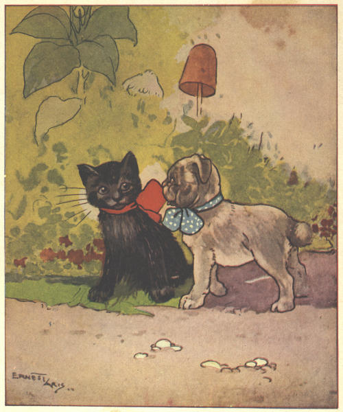 Then Maggie heard a terrible noise. And looking round she saw poor Pepper surrounded by Puss and her three little kits with their backs up, hissing and miaouing with all their might.