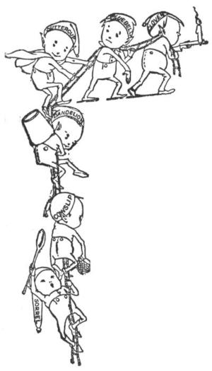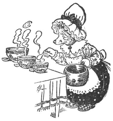“My dears,” she said, “you’re going to have bread in your broth every night. And I’ve got a new soup recipe in my pocket. What’s more, we’ve all been asked out to tea to-morrow, so I’m going to put your hair in curl-papers.”