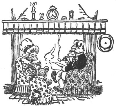 The fireplace, with its open chimney (it had a green frill on a string under the mantle-shelf) was the cosiest in all the land, as Mr. Bear very well knew when he smoked his pipe there on a winter night.