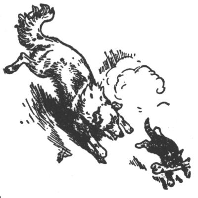 “Bow-wow-wow-wow!” Off flew Puss and her kits, and scrambled up a tree. The next moment Bruno came bounding up, and oh, wasn’t Maggie glad to give Pip, Pop, and Pepper back into their mother’s charge!