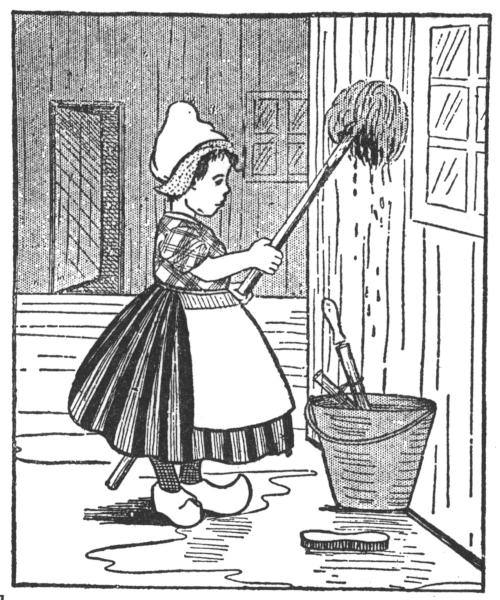 The Dutch people keep their houses and streets very clean. They are always scrubbing their houses inside or out, and the little girls have to help in this as well as their big sisters.