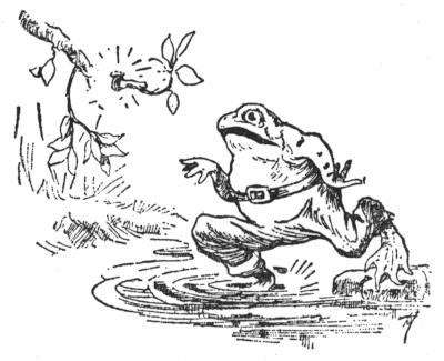 “Really,” he thought, “I have a very fine voice,” and the fishes putting their heads out of the water thought so too. But fishes have no voice at all, so perhaps that was why they thought the singing of the frog so wonderful. Then, too, he was their next-door neighbor, and the doings of next-door neighbors are sometimes thought more wonderful than the doings of persons at a distance—though at other times it may be just the other way about.