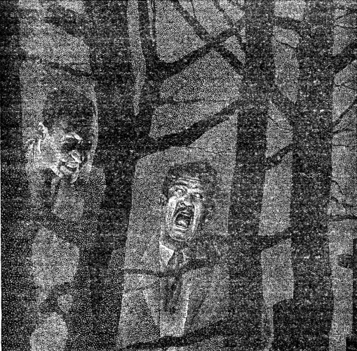 And then the bewildered crowd noticed something which put both Luella and the body out of their minds for a moment. It was Thorndike—on whom the sudden excitement and jostling crowd seemed to be having a curiously bad effect. He had evidently been knocked down in the general bustle, and was on the floor trying to drag himself to a sitting posture. The expression on his face was terrifying in the extreme, and his eyes were beginning to take on a glazed, fishy expression. He could scarcely speak aloud, but the husky rattle of his throat held an ineffable desperation which was obvious to all.