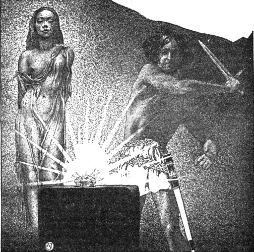Nione contemplated the swordsman through half-closed eyes. Calmly he returned her gaze, and something in the depths of his fierce blue eyes caused her pulse to beat a little faster, and a faint flush tinged her alabaster cheeks.