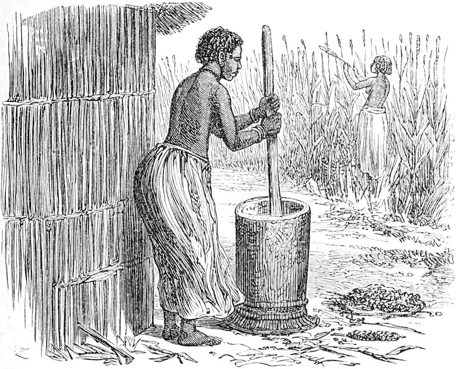 Benta war gut mit Mais und einem Korn versehen, das die Eingeborenen Tschoroko nennen und das ich für Wicken halte. Ich kaufte mir einen guten Vorrath davon für meinen eigenen persönlichen Bedarf, da ich fand, dass es eine sehr gesunde Nahrung sei. Das Korn wurde auf den flachen Dächern der Tembés in grossen, aus der Rinde des Mtundu-Baumes angefertigten Kasten aufbewahrt. Hier habe ich den grössten Kasten erblickt, den ich je in Afrika gesehen; man hätte ihn für die Hutschachtel eines Titanen halten können. Er hatte sieben Fuss im Durchmesser und zehn Fuss Höhe.