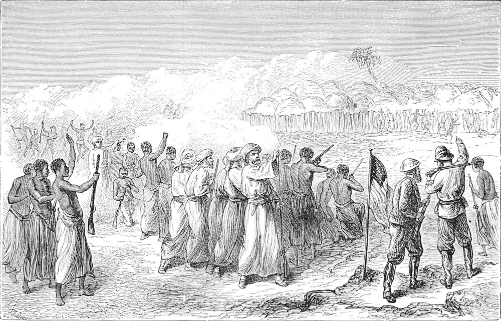 „Mensch, wie wagst Du es, Deine Flinte gegen den Herrn zu richten?“ Darauf warf sich Mabruki mir zu Füssen, versuchte sie zu küssen und bat mich, ihn nicht zu bestrafen. „Jetzt sei alles vorüber“, sagte er, „es würde keine Zänkerei mehr vorkommen, sie würden alle mit mir ohne irgendwelchen Streit nach dem Tanganika gehen und Inschallah! wir werden den alten Musungu in Udschidschi finden. Sprecht, Männer, freie Männer, wird das nicht geschehen? Werden wir nicht an den Tanganika gehen, ohne irgend weitere Unruhe? Sagt das dem Herrn einstimmig.“