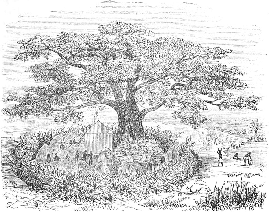 Wenn ich mich recht besinne, so hatte der Baum 38 Fuss im Umfang. Es ist der schönste Baum seiner Art, den ich in Afrika gesehen. Unter der ungeheuern Laubkuppel desselben hätte ein Regiment Soldaten bequem zu Mittag rasten können. Der Durchmesser des von ihm geworfenen Schattens war 120 Fuss. Die kräftige Gesundheit, der ich mich zu dieser Zeit erfreute, setzte mich in den Stand, die[S. 313] Umgegend mit Bewunderung zu gemessen. Ein Gefühl von Wohlbehagen und vollständiger Zufriedenheit ergriff mich, wie ich es in Unyanyembé nicht gekannt, wo ich mein Leben in Unthätigkeit und Aerger verbracht hatte. Ich unterhielt mich mit meinen Leuten wie mit Freunden und meinesgleichen. Wir raisonnirten miteinander über unsere Aussichten in ganz kameradschaftlicher, geselliger Art und Weise.