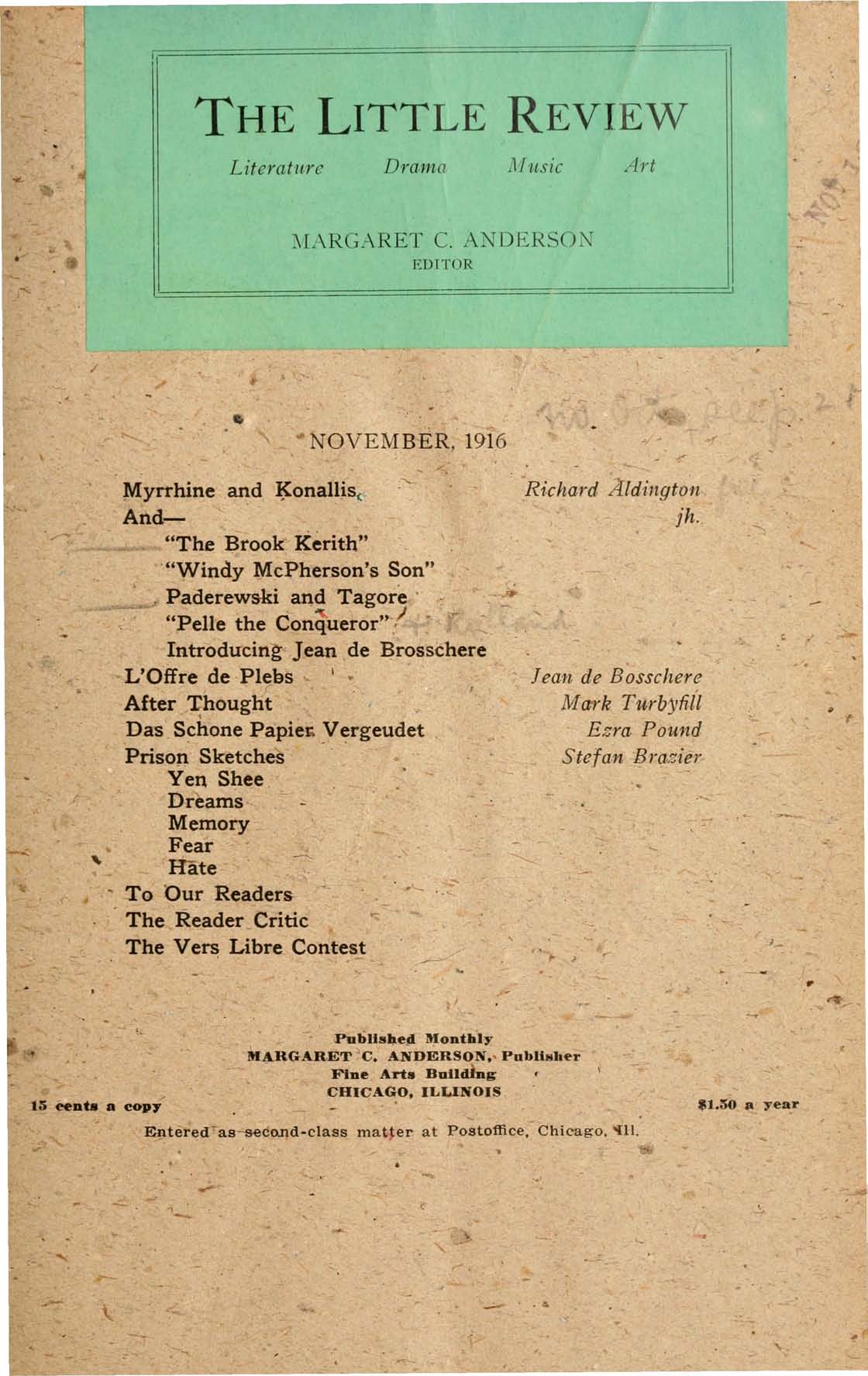 Title: The Little Review, November 1916 (Vol. 3, No. 7)