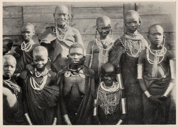 The people who live in the district through which we had hitherto passed are called the Masai tribe, a nomadic folk who travel about from one place to another, according to the pasture the land offers for their goats and sheep. They have distinctly warlike propensities, and a warrior chief is often met having a few armed followers, who, like their master, smear their bodies with grease and red earth, only wearing a small strip of cloth, or an animal’s skin over the shoulder, and sometimes a few feathers in their matted and oiled hair. The fierce opposition they showed to the pioneer Missionaries is now no longer displayed; in fact they appear somewhat timid and reserved.