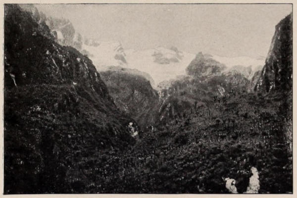 Scrambling up on to the glacier, we looked beyond over miles and miles of ice that for hundreds of years God—the Creator—alone had been beholding. Although we were standing nearly 14,000ft. above sea-level, the highest peak, that rose as a white dome above its companions, appeared miles above us. It was difficult to judge of its approximate height, as so many other points intervened, but it could not have been much less than 20,000ft.