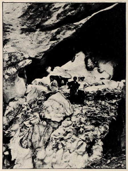 Only one of our personal boys had succeeded in facing out the difficulties of the climb. While standing on the ice with us, he took out from his pocket a little tin pot, which he filled with ice. He explained it was a present for his wife. Afterwards, when we had descended to camp, he took it out to show the other boys, and, although disgusted beyond measure at the trick nature had played him, he consoled himself by taking the water to his wife to explain to her how it was once a stone.