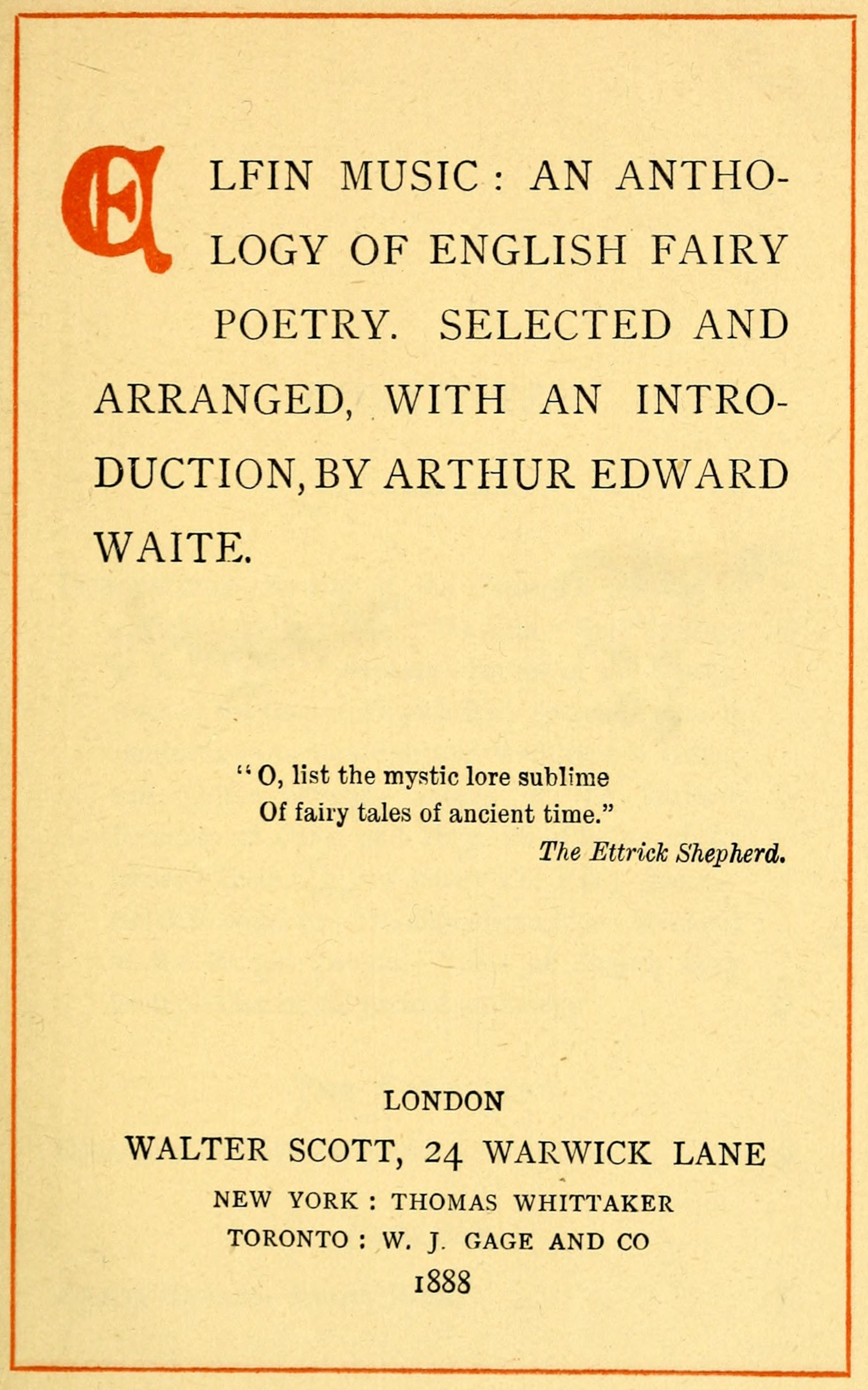 Songs and Poems of Fairyland. An Anthology of English Fairy Poetry. Selected and arranged, with an Introduction, by Arthur Edward Waite.