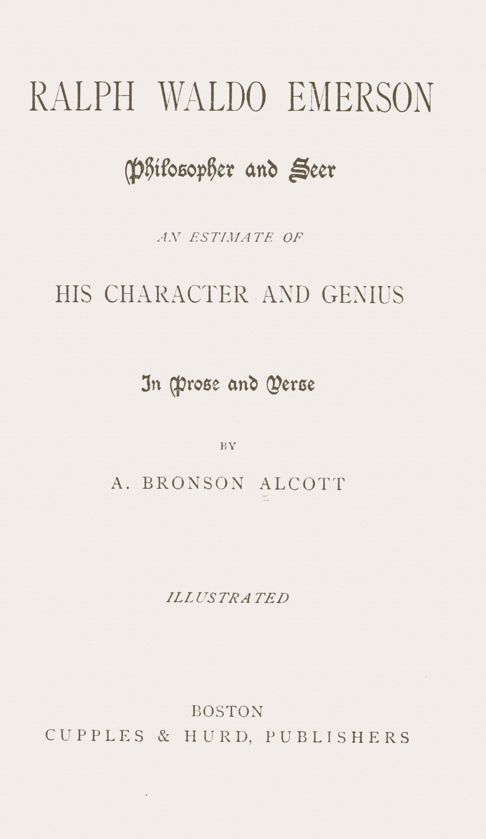 RALPH WALDO EMERSON, Philosopher and Seer. An Estimate of his Character and Genius. By A. Bronson Alcott.