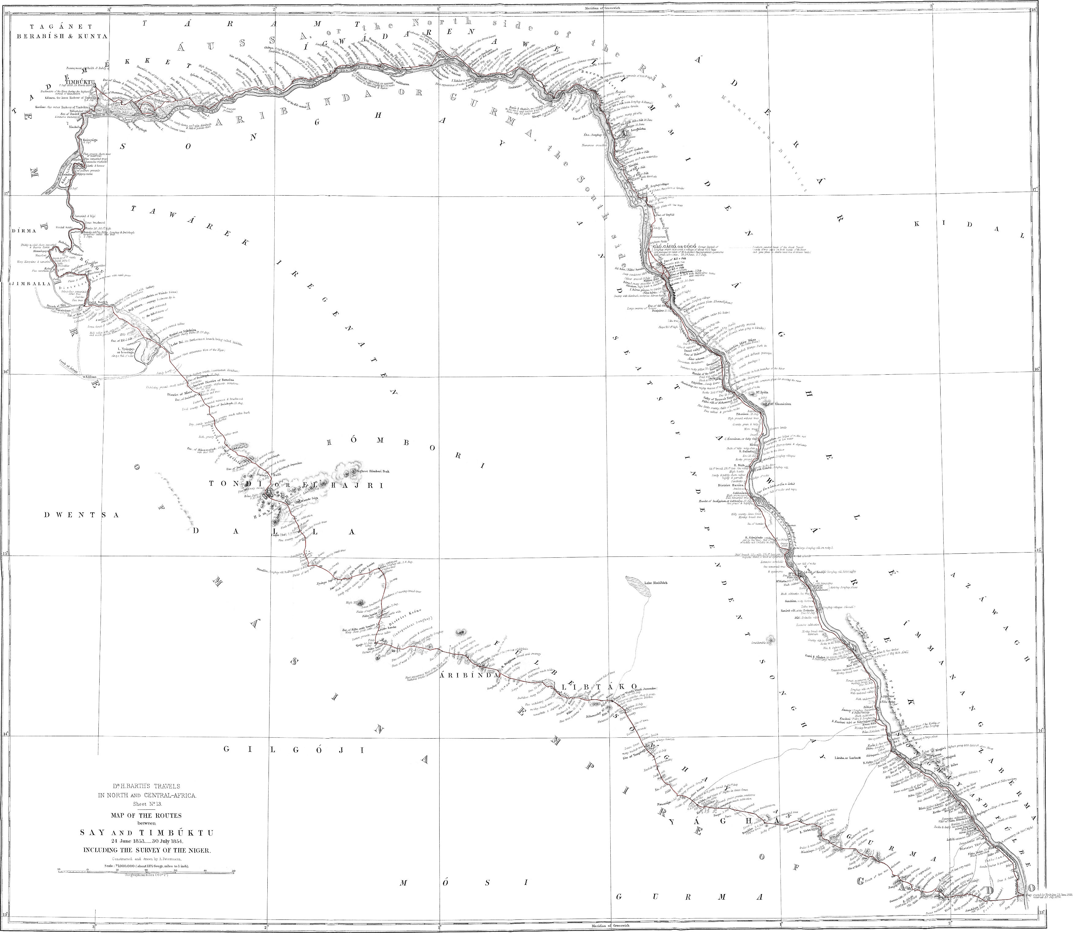 | Leave Gando. — Extensive Rice-Grounds. — Kámbasa. — Swampy Valley with Rice-Grounds. — Gaúmaché. — Unsafe State of the Country. — Gúlumbé, rich Vegetation. — Solitary Pilgrim. — Kardi. — Hausáwa. — Bírni-n-Kebbi. — Situation at the Brink of the wide swampy Valley. — ʿOthmán Záki. — Kóla, and its Governor. — Júggurú. — Zogírma and its Governor. — Dangerous Road. — New Companions. — Tilli. — A Day in the Wilderness. — Site of Bírni-n-Débe. — Dallul Máuri. — Shallow Vales. — The Valley of Fógha. — The Salt of Fógha. — Character of Fógha People. — Importance of Fógha in Ethnological Respect. — Plenty of Kóla Nuts, but no Corn. — Unexpected Generosity. — Dense Forest. — A Solitary Limtúni. — Bóso. — Garbo. — Lanadéji. — Peculiar Cornstacks. — Songhay Farming Hamlets. — Avoid Támkala. — Short Marches. — Tóndifú. — Reach the Niger. — Aspect of the River. — Large Canoes. — Town and Market of Say. — State of Market. — Traffic. — Governor of Say. — No Songhay Interpreter. | |
