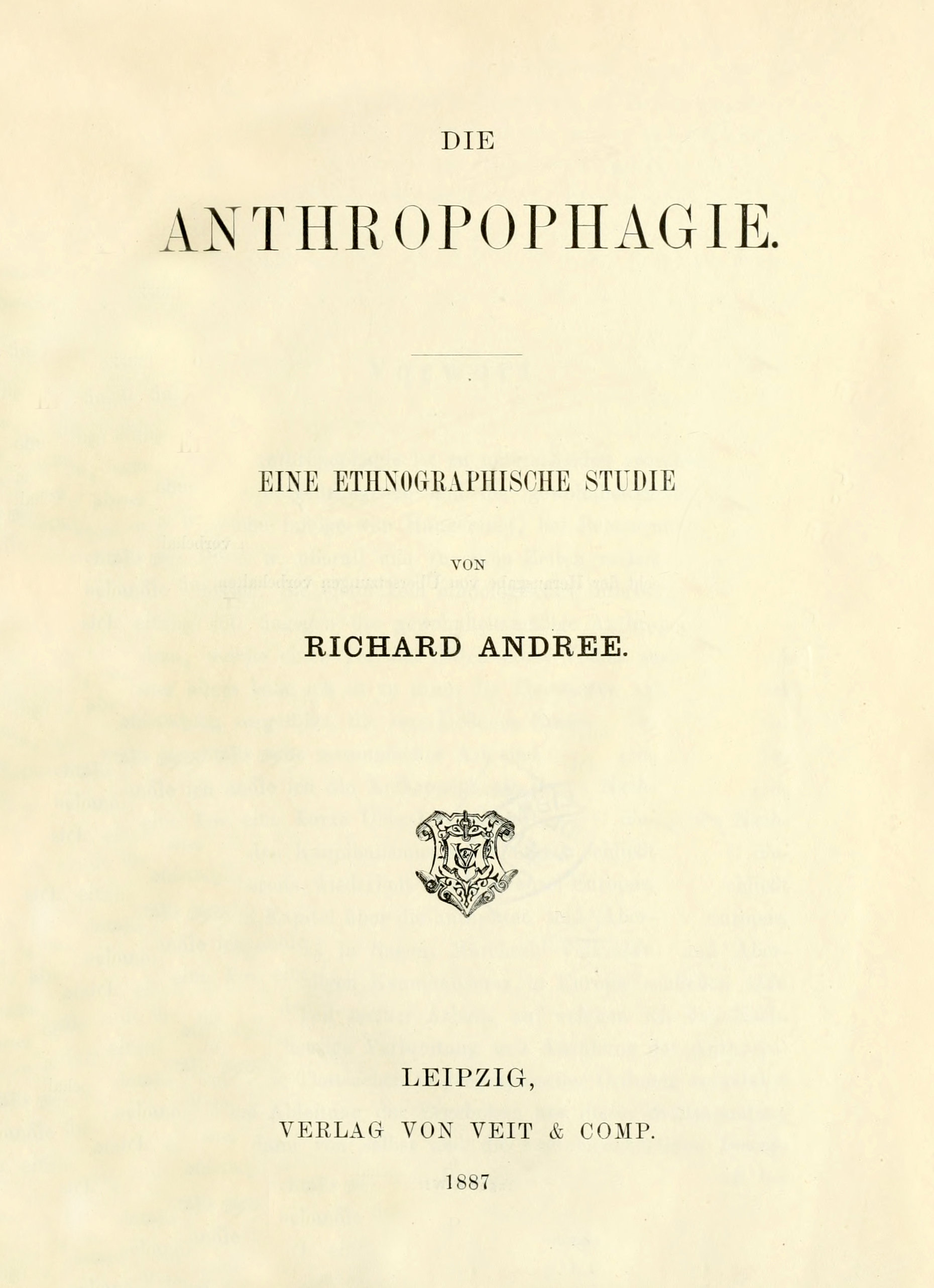 Bereits in den Mitteilungen des Vereins für Erdkunde zu Leipzig 1873 habe ich eine Abhandlung über die Verbreitung der Anthropophagie veröffentlicht, welche der nachstehenden Darstellung zu Grunde liegt. Seit jener Zeit hat sich der Stoff gehäuft, es sind nicht nur zahlreiche Belege, namentlich Afrika betreffend, hinzugekommen, sondern auch die Frage nach der prähistorischen Anthropophagie ist jetzt eingehender erörtert worden, als es nach dem damaligen Stande der Wissenschaft der Fall sein konnte. Da jene kleine Abhandlung oft verlangt wurde und an einem weniger zugängigen Orte sich befindet, so habe ich mich entschlossen, dieselbe in ausführlicherer und mit den neuesten Ergebnissen der Wissenschaft vermehrter Form hier wieder zu veröffentlichen.