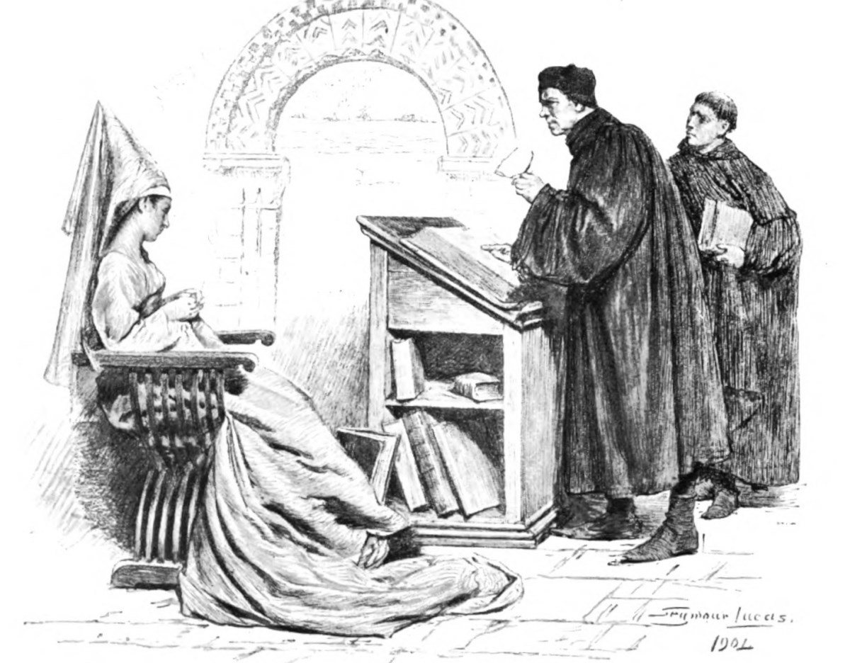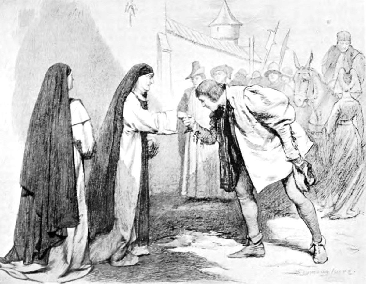 “I have been to Rome, sister,” he said; “the point of my right shoe and the four iron shoes of my beast have been blessed by the Holy Father. If there be sin upon you, bend down and kiss them also.”