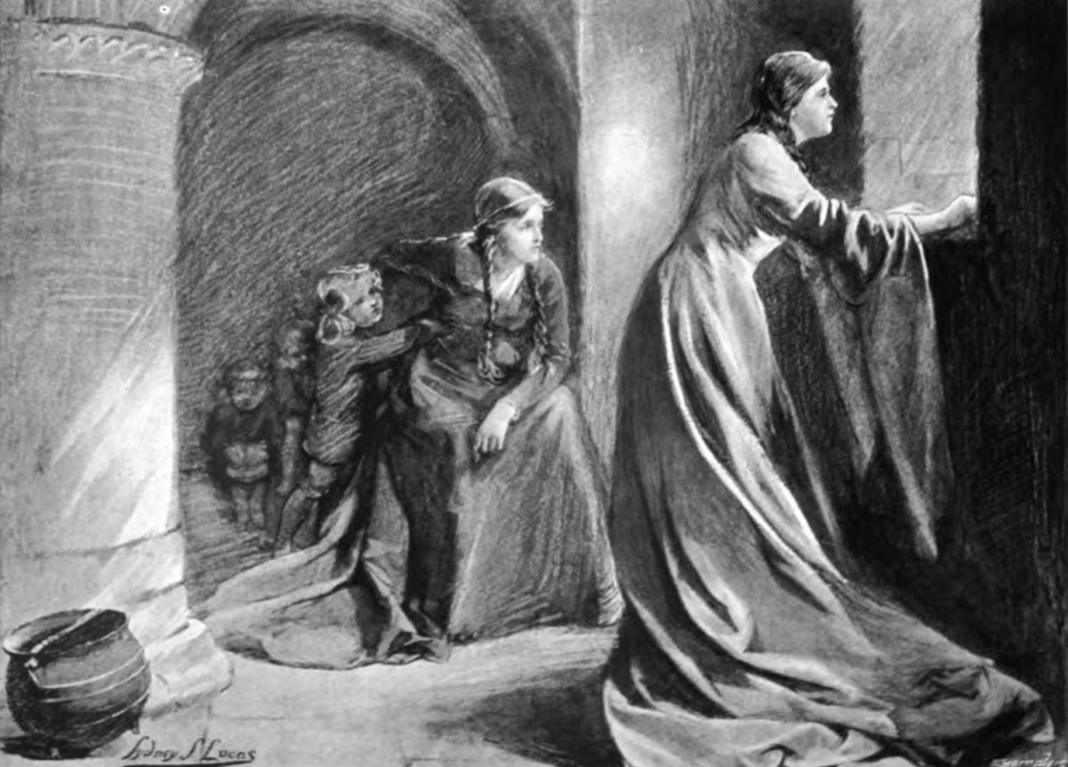 “Let her bide—let her bide,” he cried. “She hath lost her good liege lord! What wants she more with this world?”