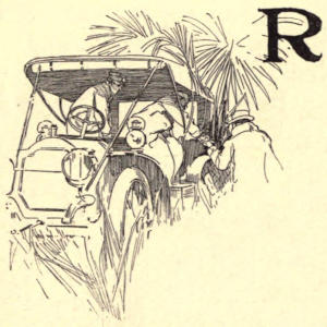 A mere path straggled over and among the hills and was lost in the great patches of native rock. We began to take the country seriously. Trepidation mingled with curiosity. Once in a while a good sort of winding dirt road gave promise of speed, only to change, like a dissolving lantern slide, to a staggering trail over the rocks or between them. The stones increased in number and in size. Each occasional break in the bumping, swaying, swinging, car-racking, tire-tearing progress became shorter. We forgot the stately palms, the queer huts, and the beautiful red flowers. We did not even hear the evening song of the many birds.