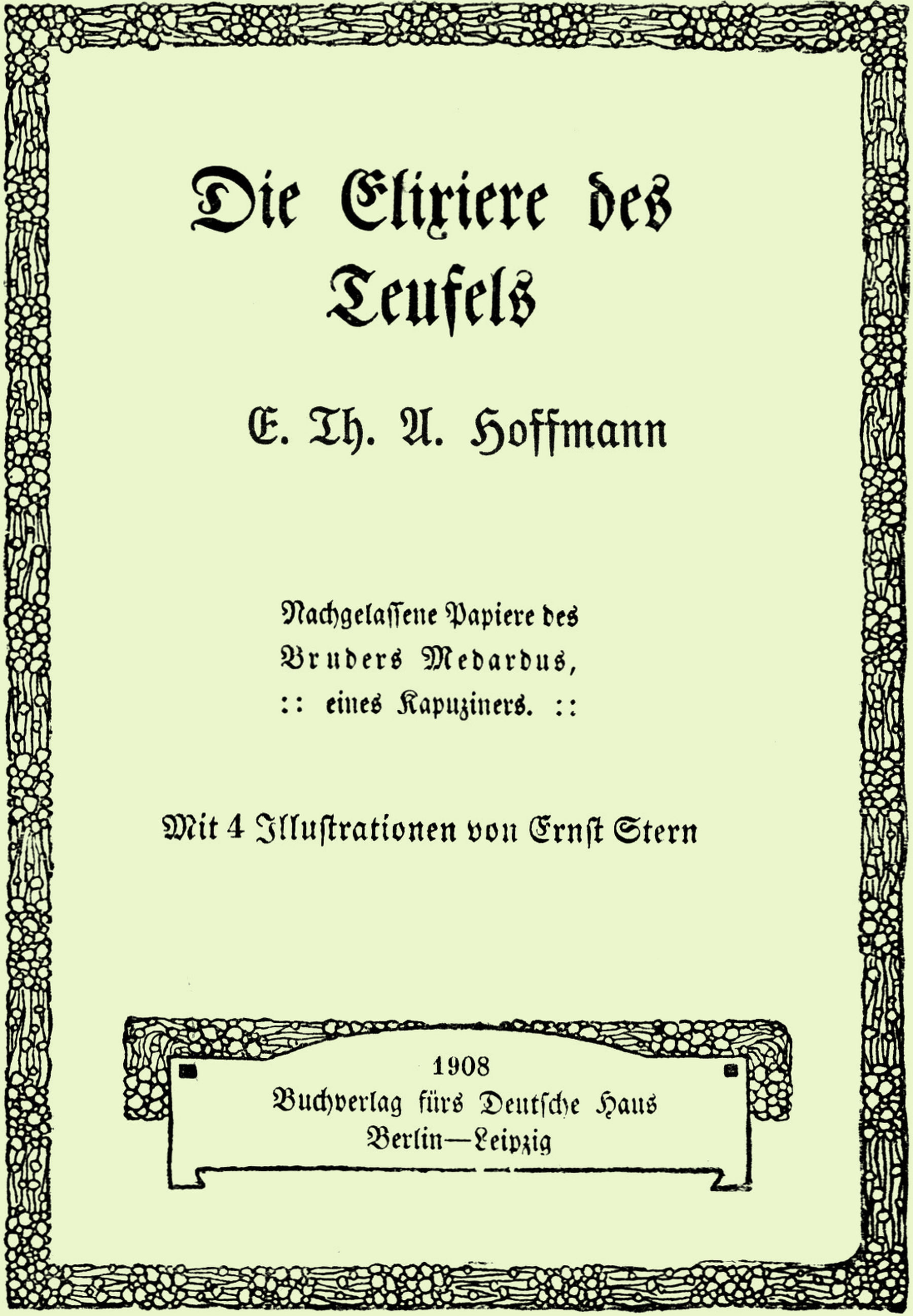 Der vorliegende Band bietet eine seiner reifsten Erzählungen. „Die Elixiere des Teufels“ schuf Hoffmann in der literarisch fruchtbarsten Zeit seines Lebens. Der erste Band entstand in Dresden, als die unerquickliche Bamberger Periode glücklich hinter ihm lag, der zweite in Berlin. „Die Elixiere“ beweisen am besten, daß Hoffmann nicht nur, wie seine zahlreichen mißgünstigen Beurteiler behaupten, stark nach der Weinlaune schmeckende Capriccios düstrer und heitrer Art hinwerfen konnte. Wenn auch — das gelang Hoffmann selten anders — die Komposition unklar und in ihrer gehäuften Fülle scheinbar unentwirrbar bleibt, so geht doch eine tiefe Idee durch das Buch. Eine einzige unbedachte Tat genügt, den Menschen zu vernichten. Ein Augenblick verbotenen Lüsten nachgegeben, und schleppend folgt eine dunkle Kette dumpfer Tage, in denen Frevel sich häuft auf Frevel.