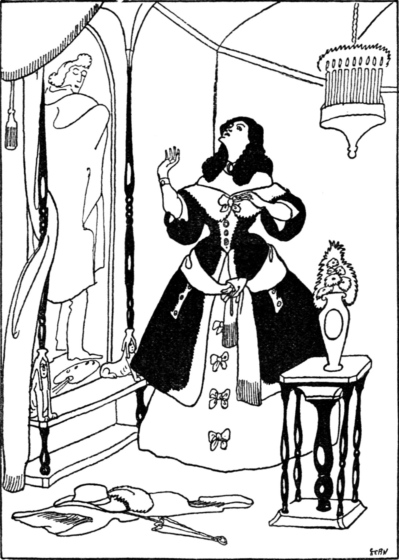 „Nun nun! — ich bin kein Inquisitor! — fatal wär’s doch, wenn ein geistliches Gelübde Sie bände. — Zur Sache! — möchten Sie nicht für das Unheil, das Baronesse Aurelie Ihnen zufügte, Rache nehmen?“ —