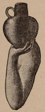 There was a girl that refused men,[74] and there came a hyena and married her. The hyena said, “I will conduct her to my home that she may pay a visit”. His mother-in-law said, “She does not pound. She only pounds castor-oil beans.”[75] The son-in-law said, “Yes,” and she accompanied him on the journey and arrived at the village. At the village they staid (slept) four days: then the husband said, “I will go and cut bark (to make cloth)”. He told his chief wife saying, “That girl does not pound”. When the husband went away, his wife went for the husked grain and said, “Girl, pound this”. The girl said, “I do not pound, I can only pound castor-oil beans”. She said, “Who will pound for you? Take the mortar, put in your grain, and pound”. As she pounded water appeared up to her loins, she pounded again, and it was at her neck, as she tried again, she was covered over.