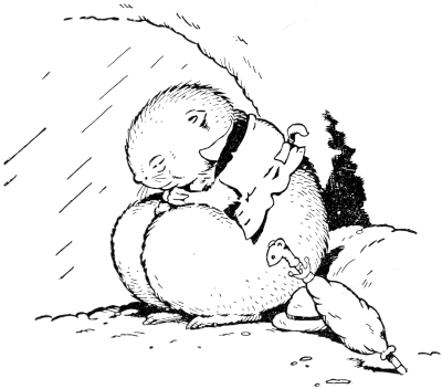 That night he was more tired than he ever had been on his hardest day of work. He ate an early supper and was almost too tired to open the jar of his favorite honey. He ate a clover-sugar cooky and nearly fell asleep over it, and then went to bed under a dry leaf, after carefully hiding all his things, for he remembered what had happened to his hat.