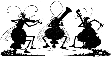 That is one reason why I am not going to say a word about the good-by part of this party. I should much rather have you sit and chuckle at the way[Pg 246] Dr. Alexander Beetle Bug is digging the nice old fubbly gentleman Bumblebee in the ribs instead of feeling his pulse, while they both giggle and buzzle over old jokes they knew when they were but young Beetle Buglet and Bumblebeelet. And I should much rather have you listen to the music of those joyous insects with their flutes, violins, zippers, and zingers, and zoomers, and buzzoons, and drummerinos, and all the funny instruments only night insects know how to play. If you look and listen until it all soaks right into your mind, you will know how wonderful was that very most greatest peace of Anthony Ant!