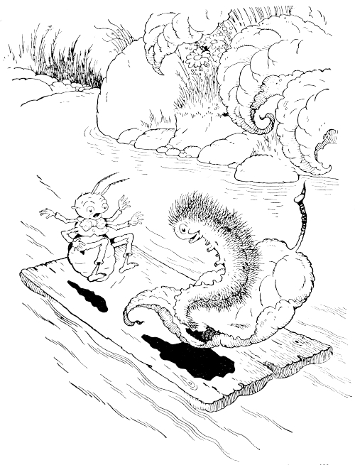 Thoughtfully Anthony Ant crawled down the cat-tail and went on toward the brook.