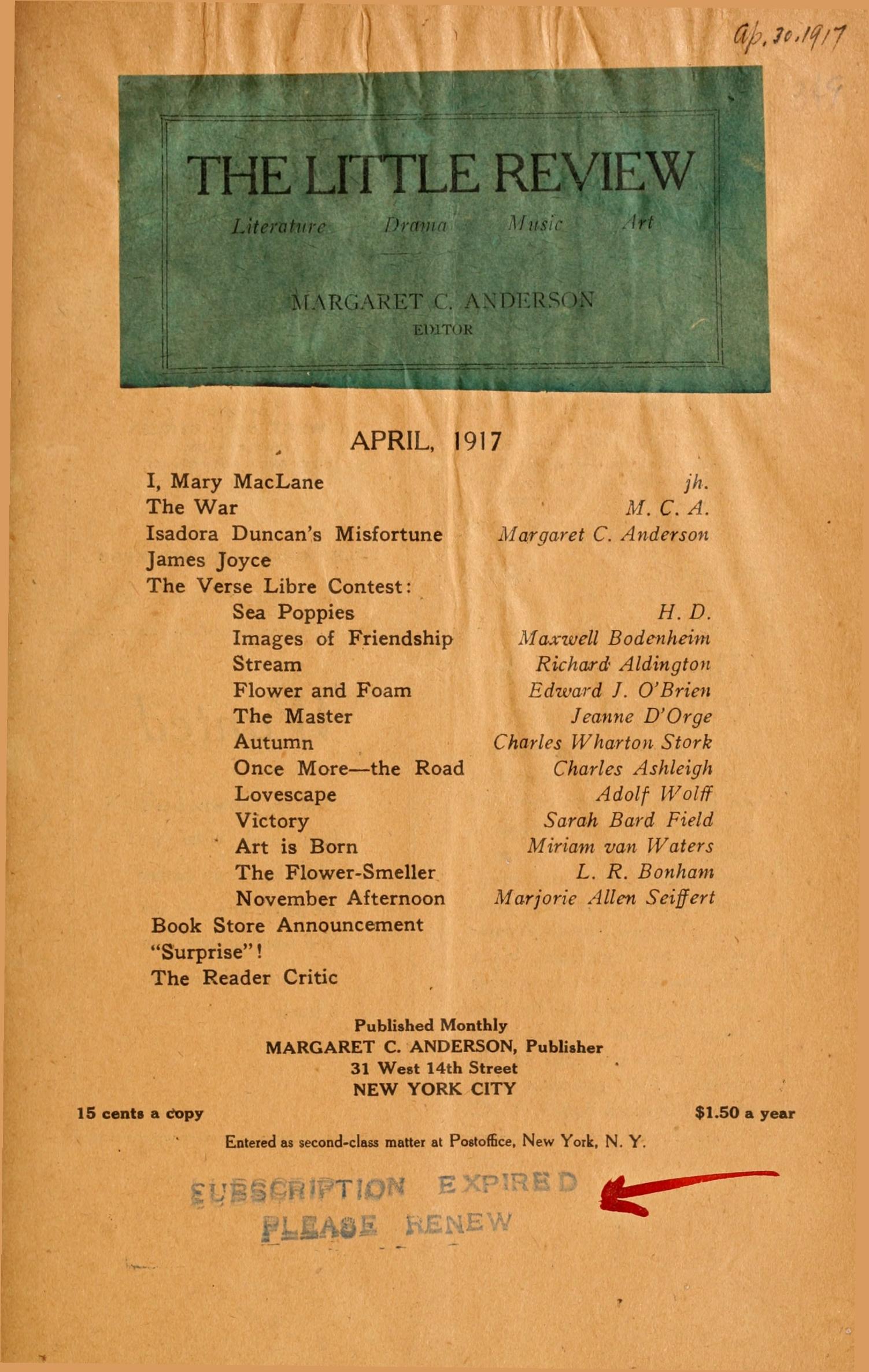Title: The Little Review, April 1917 (Vol. 3, No. 10)