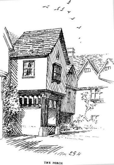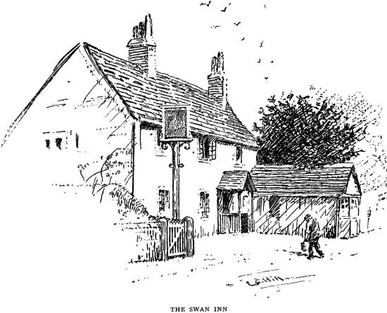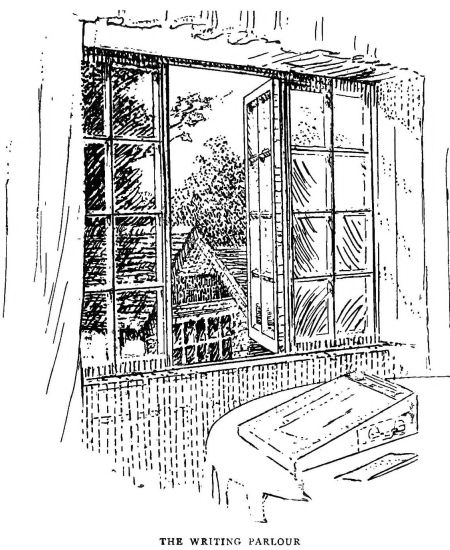 We have visited Swallowfield Cottage, have been into its various rooms and have wandered about its pretty garden. No wonder that Miss Mitford felt it to be a sweet and peaceful home to retire to! The front court is now a pretty piece of garden with a small lawn and with borders of flowers on either side of the path which leads to the front door from the garden gate. The house has been enlarged in recent years by the addition of a small wing on the left-hand side, while two shallow bay-windows have also been introduced—but it is still a cottage in appearance.