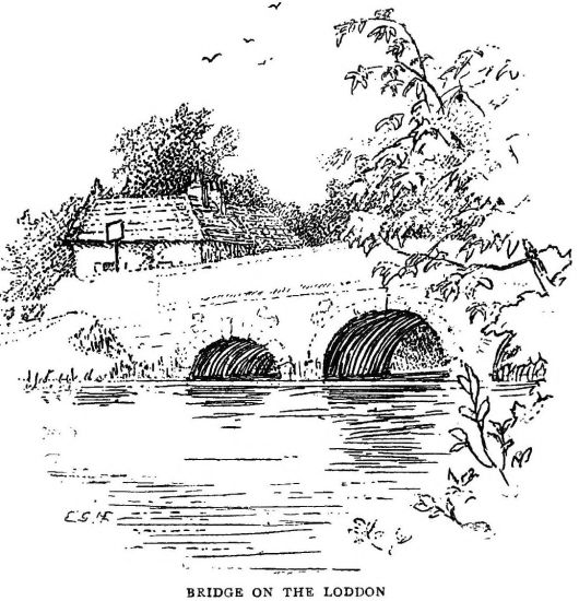 “Here I am now in this prettiest village, in the snuggest and cosiest of all snug cabins; a trim cottage garden divided by a hawthorn hedge from a little field guarded by grand old trees; a cheerful glimpse of the high road in front, just to hint that there is such a thing as the peopled world; and on either side the deep, silent, woody lanes that form the distinctive character of English scenery. Very lovely[361] is my favourite lane, leading along a gentle declivity to the valley of the Loddon, by pastoral water meadows studded with willow pollards, past picturesque farm-houses and quaint old mills, the beautiful river glancing here and there like molten silver.”