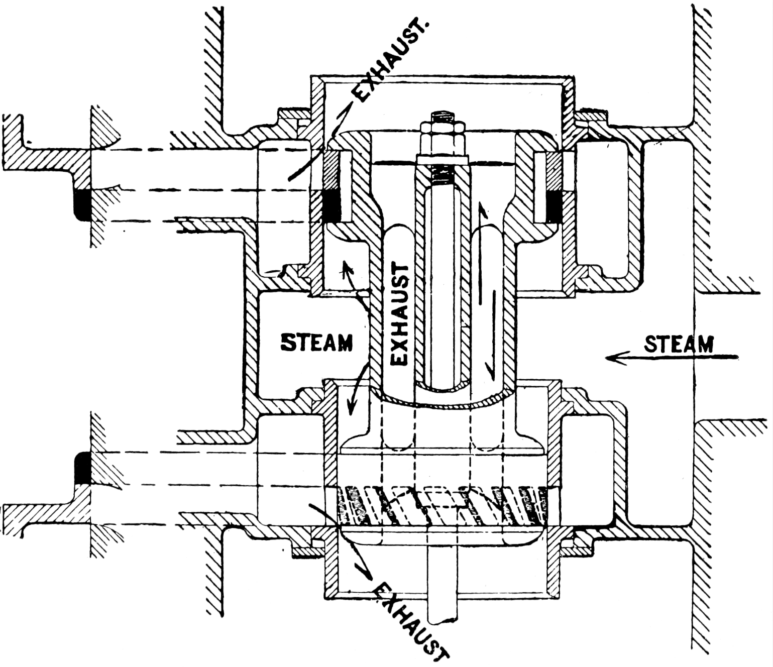 In the plain piston valve shown (fig. 29) the faces are formed by the two valve pistons, which work in a cylinder wherein steam and exhaust openings are made.