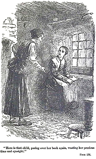 Winifred's library was not a large one. There was no Sunday-school library in those times with its weekly supply of story-books—no magazine or illustrated newspaper. Her books were few, and those of a character which I fear would hardly attract many of my young readers. Her favorite volumes were the Bible, the "Book of Martyrs," and an odd volume of Mr. Edmund Spenser's "Faerie Queene," which her father had bought for her in Bristol. Besides which she read aloud now and then to Mrs. Alwright in Hall's "Chronicle" and Sir Philip Sidney's "Arcadia." But the very fact that Winifred had access to so few books made her prize more dearly and study more attentively those she had. Over the first of these especially she pondered for hours in the intervals of her daily tasks, strengthening her spirit and feeding her imagination with the glorious truths of the one and the beautiful tales of heroism and virtue in the others.