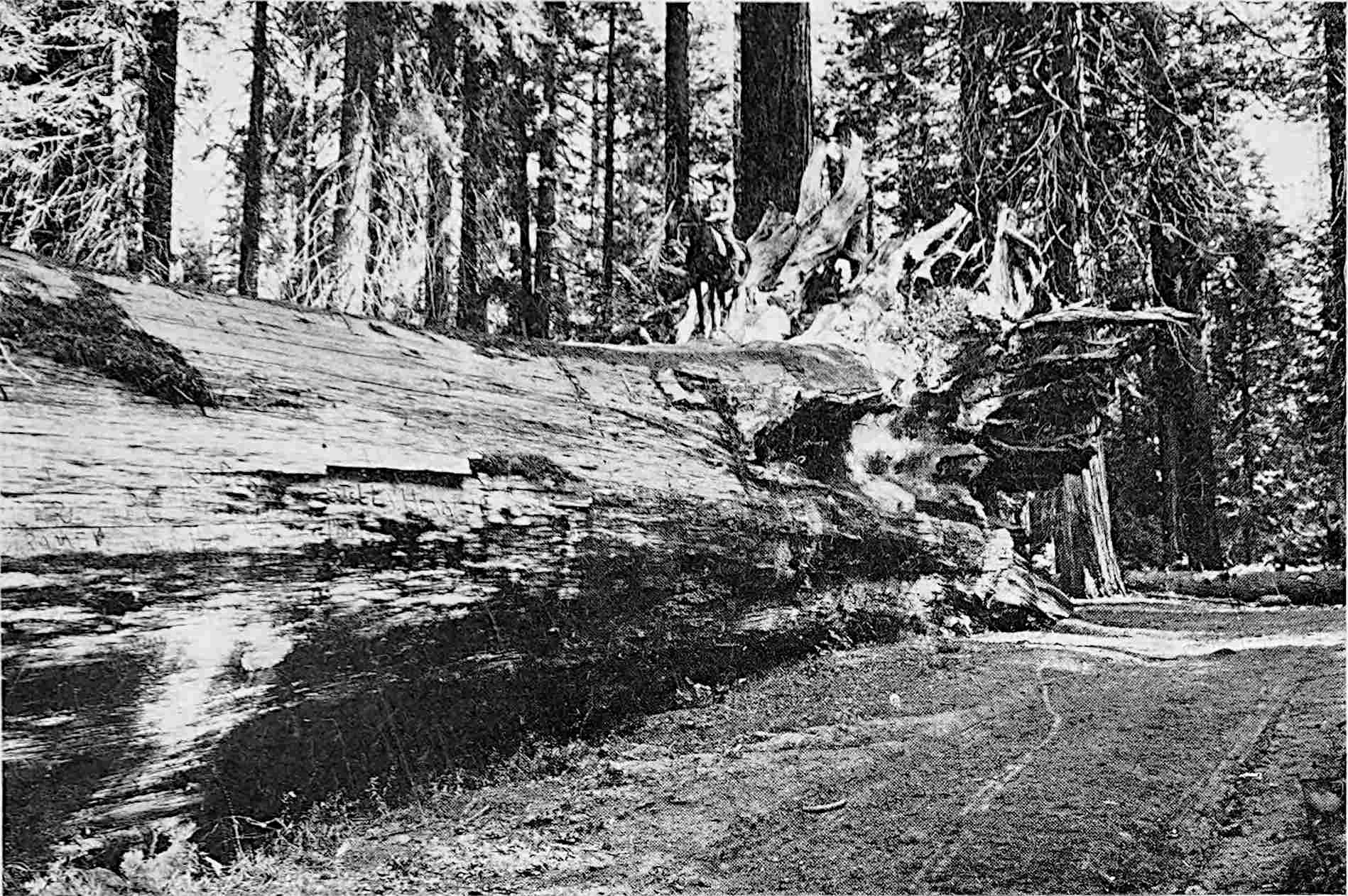With the waning of the gold excitement and the waxing of a stable Statehood, those who were 47laying the foundations of the State began to turn their faces toward the future. Gradually they came to see the need of treasuring some of its natural heritages. They recognized the fact that California had been lavishly favored with great natural wonders. Nevertheless, they came to realize also that she was not so rich in these as to be careless or neglectful of their preservation. They likewise perceived, these far-seeing ones, that although California possessed all of the Giant Sequoias, they were the most perishable of all her treasures if left without protection. Destructive humanity can little change the sublime granite forms of Yosemite. They will always remain unspoiled, and mankind can hardly mar them more than could the clouds that hover about their summits or the butterflies that flit about their bases. It is true that man may plow Yosemite’s meadows and cut down wildflower gardens that have never known a mower. He can destroy its clusters of trees, rob Mirror Lake of its reflective charm, stop the flow of its waterfalls. All this he can do. But however much he tries he can but little alter or disturb the majestic repose of its rocks. Yet he can lay low in a single day a Sequoia that waved its arms to Sierran winds when the Carpenter of Nazareth was born. In one short season he can reduce a hallowed Sequoian grove to an expanse of blackened stubble where only charred stumps remain to mark where trees once stood and “looked at God all day.”