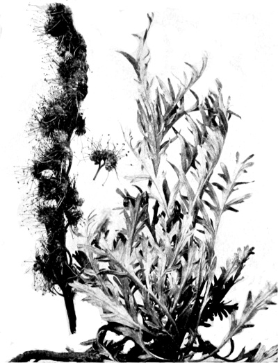 White-woolly throughout, stem simple, 6—18 inches high. Leaves spatulate to lanceolate or linear, 1—4 inches long, acute, nerved. Heads numerous in a close capitate cluster, ½—1 inch high, outer [Pg 318] bracts of the involucre straw-colour or greenish, rounded and often notched at the apex; inner ones nearly white.