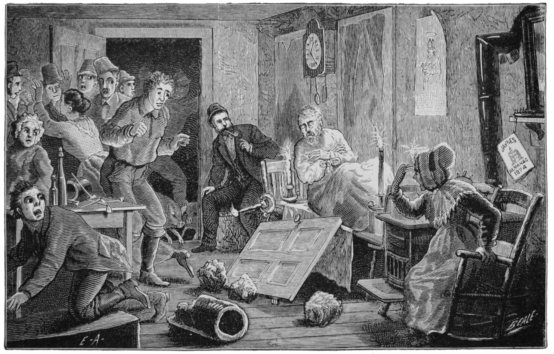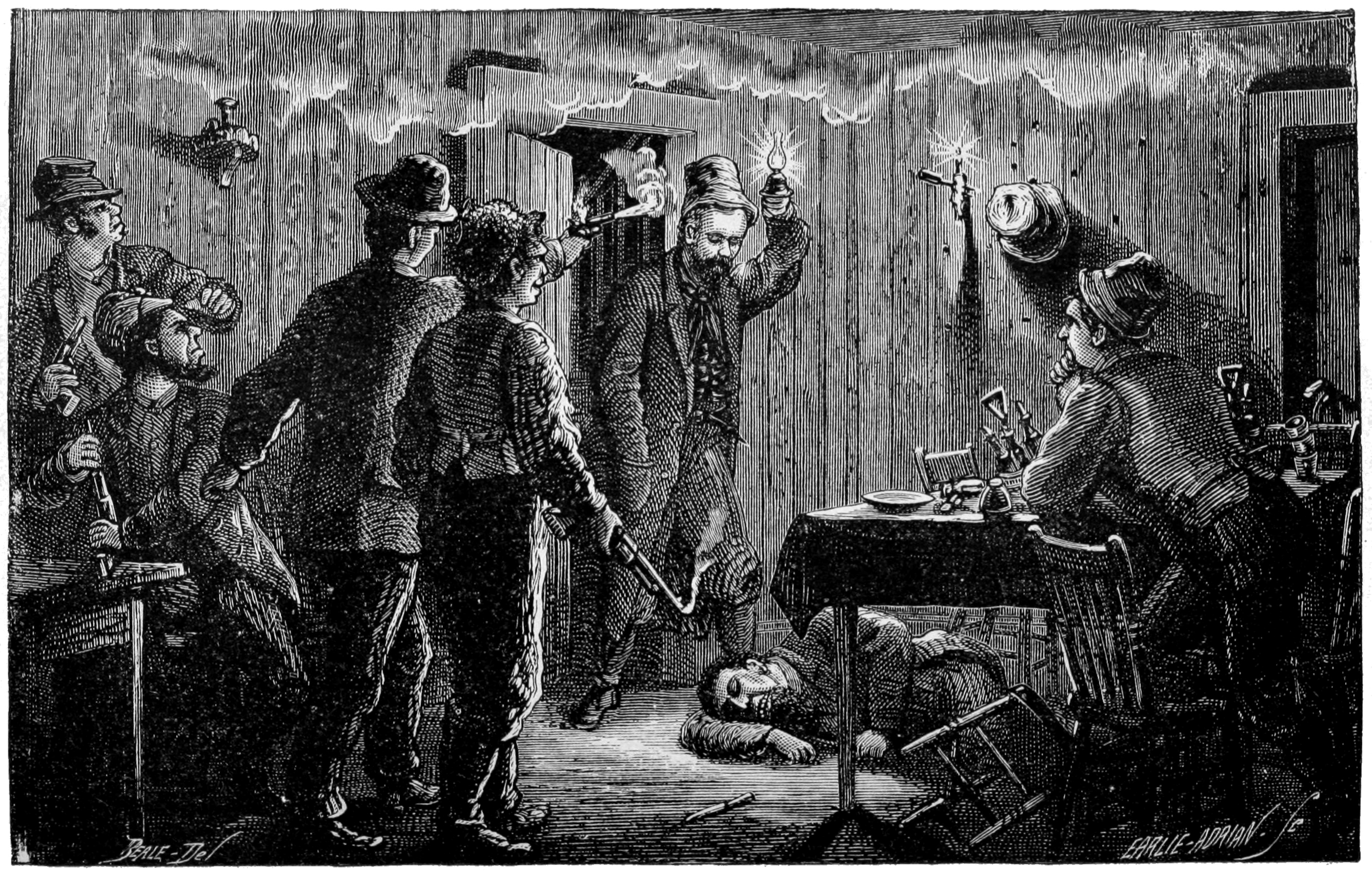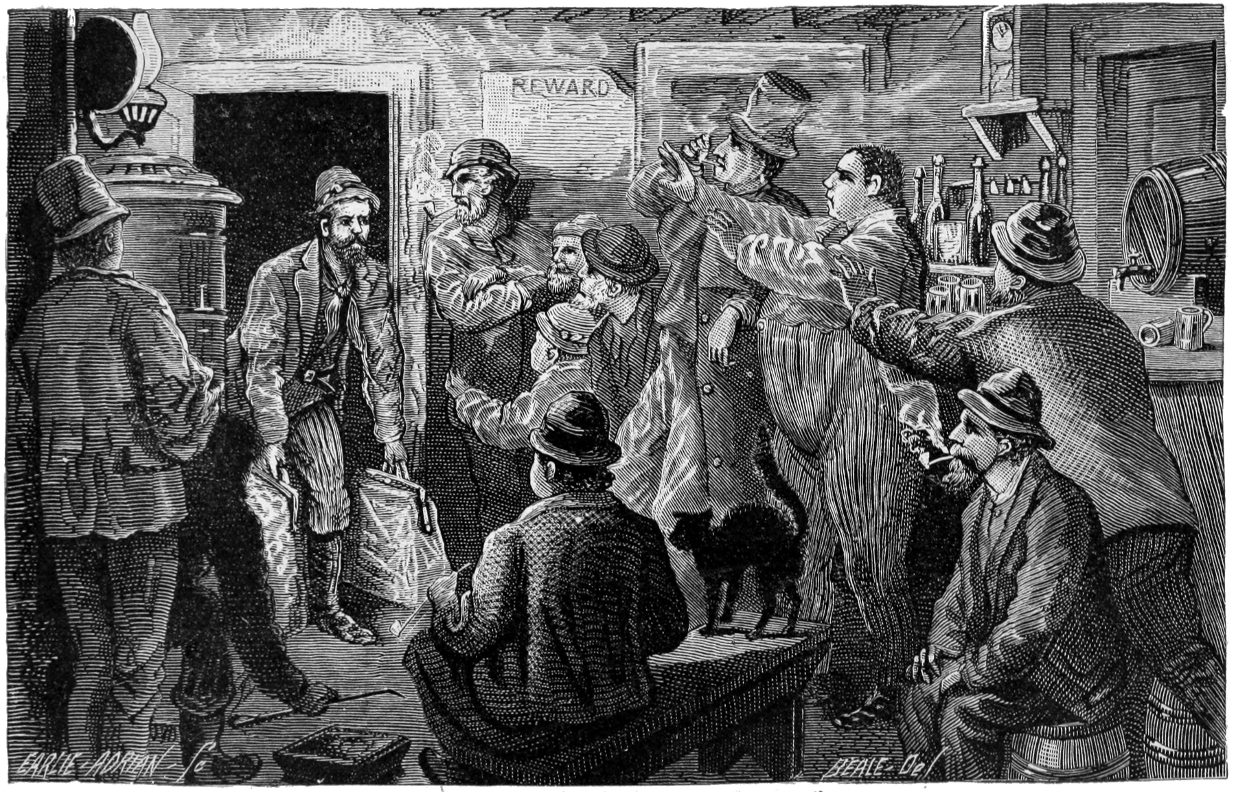It was the ninth of February, 1877, that the trial at Bloomsburg approached a crisis. Sitting in the prisoner’s 546dock, Pat Hester smiled when he saw Dan Kelly, alias Manus Kull, alias “Kelly the Bum,” in the witness-box. But his humor changed to dire dismay as he discovered that there were still other witnesses, who fully corroborated what Kelly made oath to. Dan Kelly’s story of the Rae assassination was about as follows:
