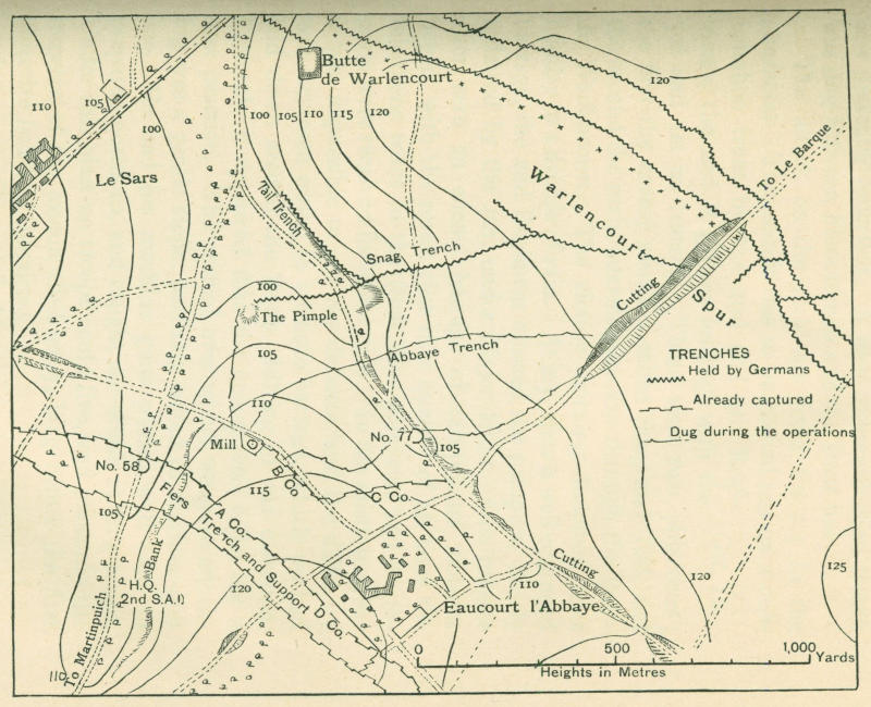 [18] The Butte de Warlencourt was never taken during the Battle of the Somme, though early in November the 50th Division made a gallant attempt. It was occupied by us in the last week of February 1917, when the enemy retreated.